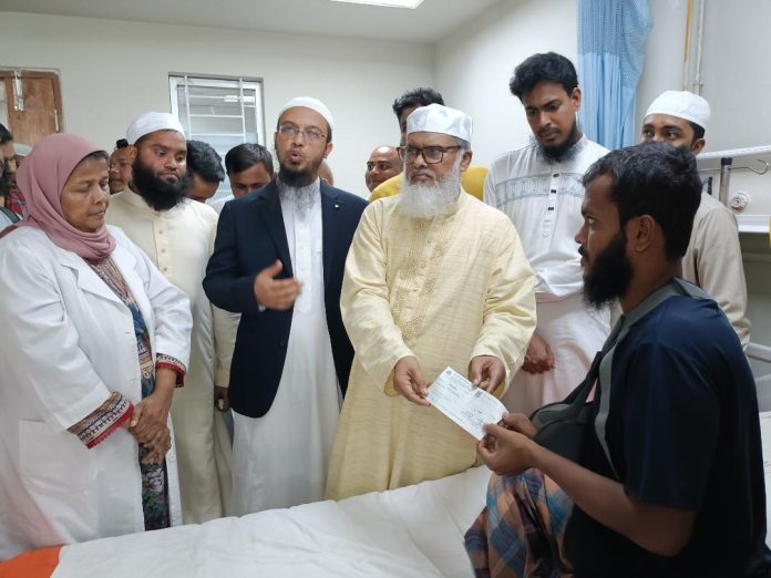 এর আগে ধর্ম উপদেষ্টা ঢাকা মেডিকেল কলেজ হাসপাতালে বৈষম্যবিরোধী ছাত্র আন্দোলনে চিকিৎসারত রোগীদের খোঁজ-খবর নেন এবং তাদের মাঝে আর্থিক সহায়তার চেক বিতরণ করেন। এসময় অন্যান্যের মধ্যে বৈষম্যবিরোধী ছাত্র আন্দোলনের অন্যতম সমন্বয়ক সারজিস আলম ও আস-সুন্নাহ ট্রাস্টের চেয়ারম্যান শায়খ আহমাদুল্লাহ উপস্থিত ছিলেন।
