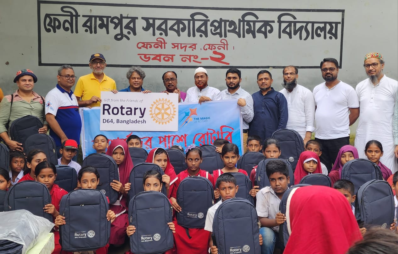 এছাড়াও রোটারি ডি৬৪ বাংলাদেশের বন্ধুদের উদ্যোগে বন্যা কবলিত ফেনী জেলায় অবস্থিত ফেনী রামপুর সরকারি প্রাথমিক বিদ্যালয়, রোটারি ফ্রি ফ্রাইডে স্কুল ও মধ্যম ছাড়িপুর কাজি হরমুজা সরকারি প্রাথমিক বিদ্যালয়ের *শিক্ষার্থীদের মাঝে স্কুল ব্যাগ ও বিভিন্ন শিক্ষা উপকরণ বিনামূল্যে বিতরণ করা হয়।*