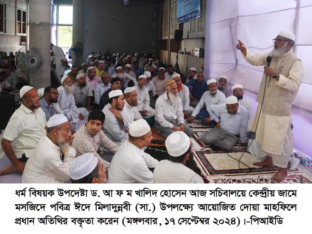আজ দুপুরে সচিবালয়ে কেন্দ্রীয় জামে মসজিদে পবিত্র ঈদে মিলাদুন্নবী (সা.) উপলক্ষ্যে দোয়া মাহফিলে প্রধান অতিথির বক্তৃতায় তিনি এসব কথা বলেন।