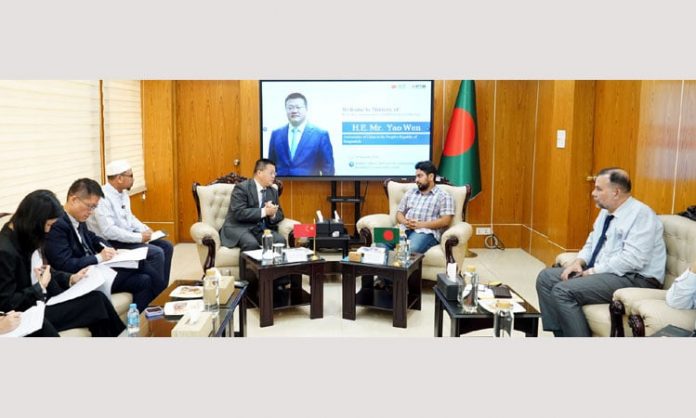 আজ সোমবার ডাক ও টেলিযোগাযোগ বিভাগের অফিস কক্ষে চীনা রাষ্ট্রদূতের সঙ্গে সাক্ষাৎকালে ডাক, টেলিযোগাযোগ ও তথ্যপ্রযুক্তি মন্ত্রণালয় এবং তথ্য ও সম্প্রচার মন্ত্রণালয়ের উপদেষ্টা মো. নাহিদ ইসলাম এসব কথা বলেন।