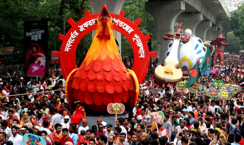 ঢাকা বিশ্ববিদ্যালয়ে আয়োজন করা হয়েছে বর্ণাঢ্য শোভাযাত্রা। লোক-ঐতিহ্য ও স্বকীয়তা তুলে ধরে এতে সর্বস্তরের মানুষের অংশগ্রহণ নিশ্চিত করা হয়েছে। ‘শান্তি, মানবতা ও সম্প্রীতি’ প্রতিপাদ্যে রমনার বটমূলে ছায়ানটের শিল্পীরা সম্মিলিত কণ্ঠে পরিবেশন করছেন বর্ষবরণের গান, যা এ দিনের অন্যতম প্রধান আকর্ষণ।
