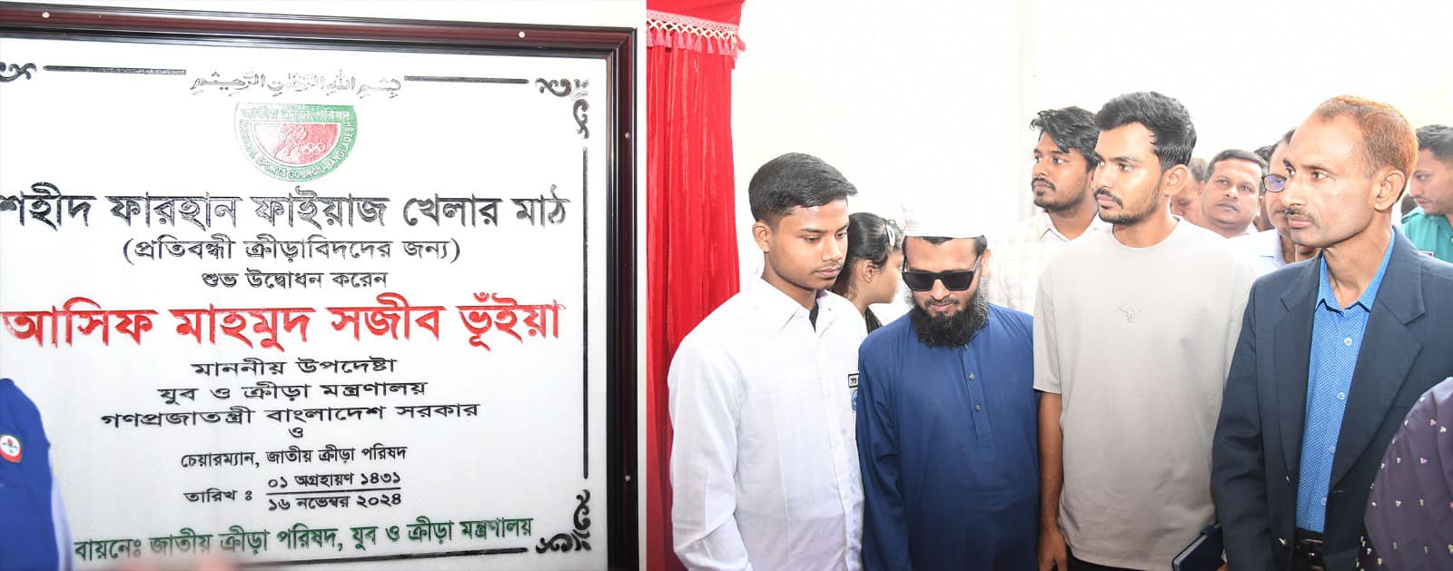 জাতীয় সংসদ ভবনের পশ্চিম পার্শ্বে বিশেষ চাহিাদসম্পন্ন শিশুদের জন্য ‘শহীদ ফারহান ফাইয়াজ খেলার মাঠ’ উদ্বোধন করেছেন যুব ও ক্রীড়া উপদেষ্টা আসিফ মাহমুদ সজীব ভূঁইয়া।