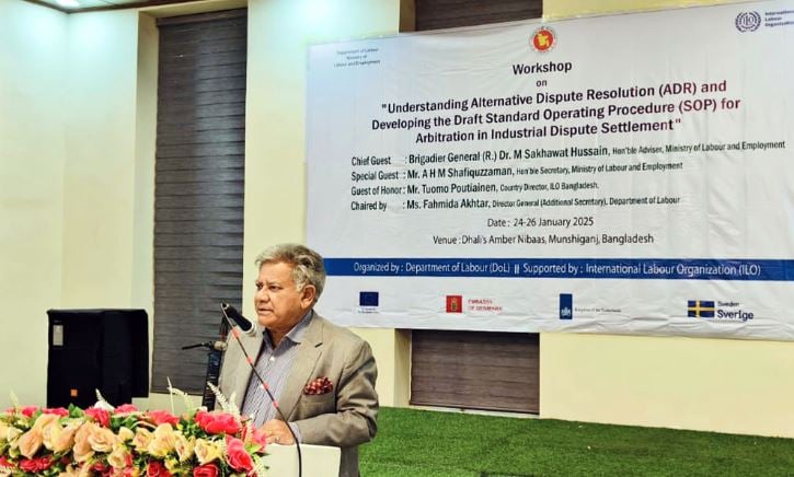 সাখাওয়াত হোসেন বলেন, শ্রম সেক্টরে একটি কার্যকর বিরোধ নিষ্পত্তি ব্যবস্থা অত্যন্ত গুরুত্বপূর্ণ। আজকের কর্মশালার মাধ্যমে একটি খসড়া স্ট্যান্ডার্ড অপারেটিং প্রসিডিউর (এসওপি) তৈরি করা হবে এবং শ্রম বিরোধ নিরসনে এটি একটি গুরুত্বপূর্ণ পদক্ষেপ হিসেবে কাজ করবে। বাংলাদেশ শ্রম আইন (বিএলএ) বিকল্প বিরোধ নিস্পত্তি (অউজ) ভিত্তি স্থাপন করেছে এবং শ্রম আদালতের উপর চাপ কমানোর জন্য অউজ নিয়ে কাঠামোগত সংস্কার করা প্রয়োজন।