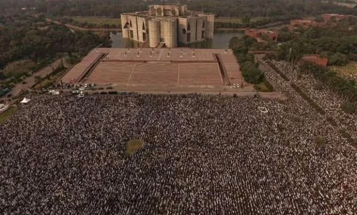 ওসমান হাদির জানাজায় অংশ নিতে মানিক মিয়া অ্যাভিনিউয়ে মানুষের ঢল নেমেছে